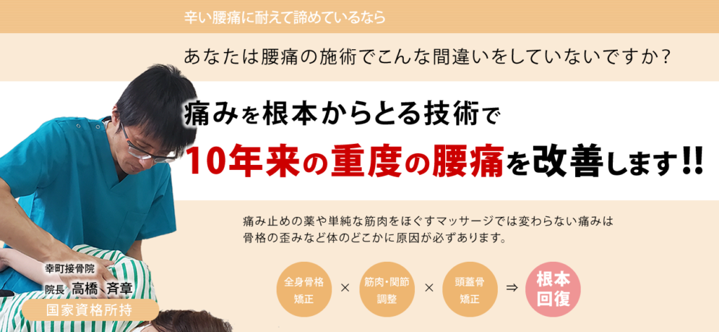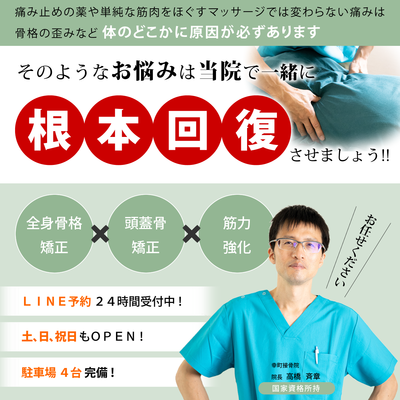 幸町接骨院では、単なる痛みのだけを解消するだけでなく、「痛みの先にある悩みを改善する」ことを目的とした施術をしていきます。